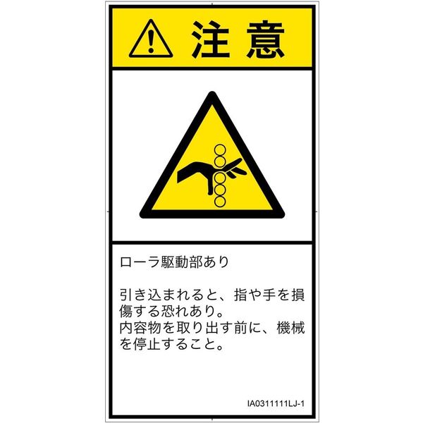 PL警告表示ラベル(ISO準拠)│機械的な危険:引き込み(ローラ)│IA0311111│注意│Lサイズ