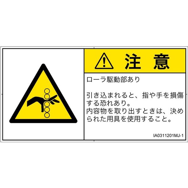 PL警告表示ラベル(ISO準拠)│機械的な危険:引き込み(ローラ)│IA0311201│注意│Mサイズ