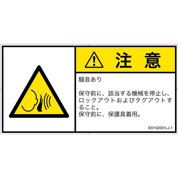 PL警告表示ラベル(ISO準拠)│騒音による危険:突然の騒音│ID0102001│注意│Lサイズ