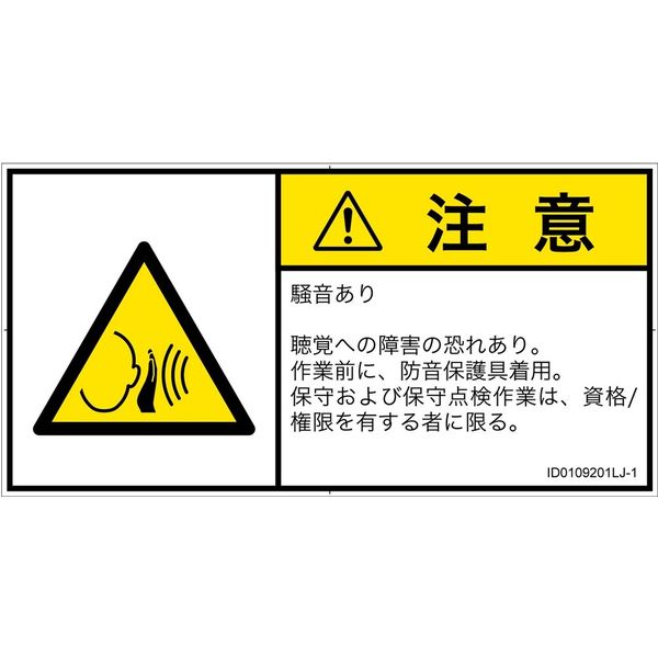 PL警告表示ラベル(ISO準拠)│騒音による危険:突然の騒音│ID0109201│注意│Lサイズ