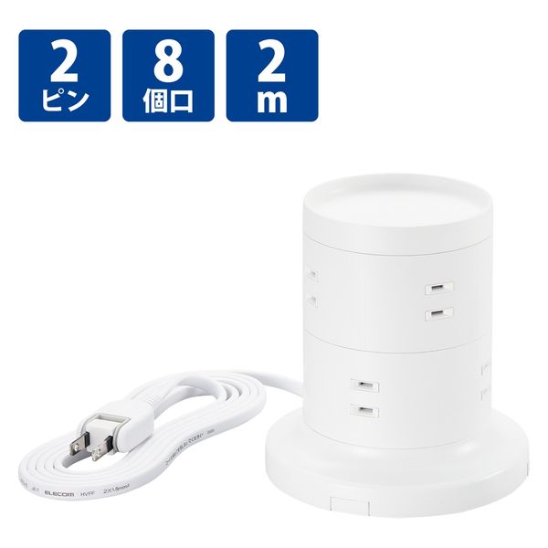 エレコム タワー型 電源タップ 延長コード コンセント 2m 2P 8個口 ほこりシャッター ECT-2720