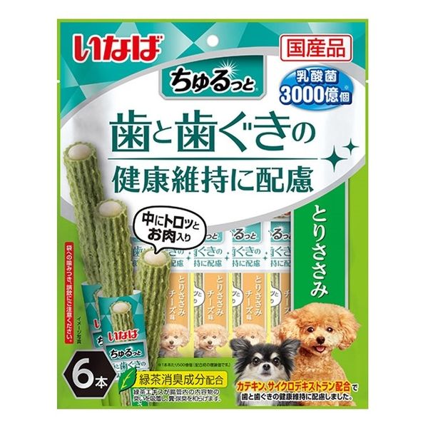 中にトロっとお肉が入った食べきりおやつ。カテキン、サイクロデキストラン配合で歯と歯ぐきの健康維持に配慮。乳酸菌3000億個(1本あたり500億個)配合。