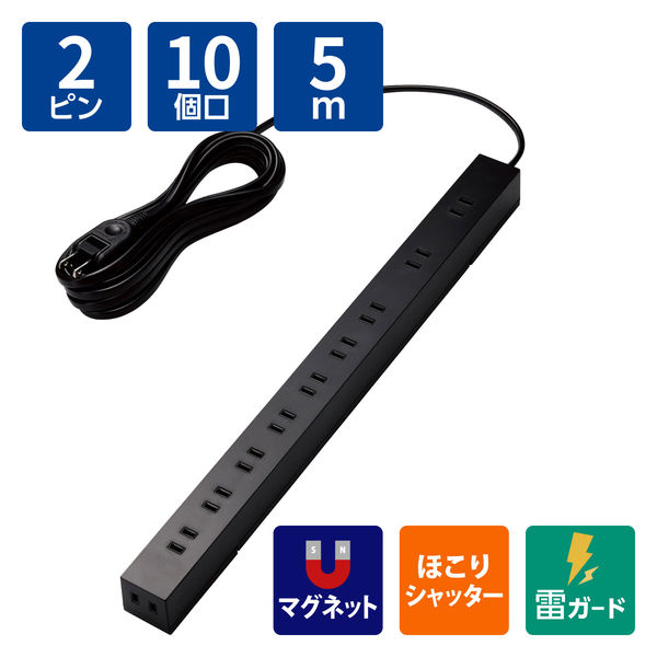 エレコム 電源タップ 延長コード コンセント 5m 2P 10個口 脚パーツ付 ECT-2650
