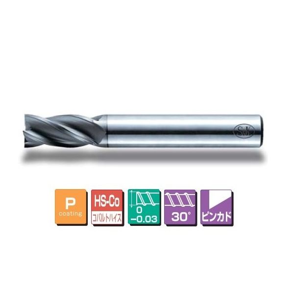 三興製作所 S&K Pコーティング ハイススクエアエンドミル4枚刃ショート刃 P-VS4T