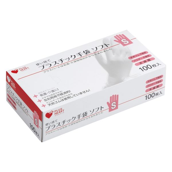 オオサキメディカル プラスハート プラスチック手袋ソフト 透明 粉なし